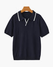 A sophisticated navy polo featuring crisp white accents, perfect for effortless transitions from casual outings to smart occasions. Crafted with a premium knit fabric, it offers a flattering fit while maintaining all-day comfort. Pair it with tailored trousers or casual chinos for a refined look.