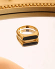 Obsidian Band is a modern icon — clean, commanding, and unapologetically bold. With its elongated black enamel inlay set in a high-polish gold-toned body, this ring plays with contrast and form to deliver a look that’s both sharp and timeless.