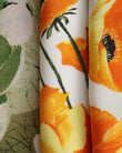 Celebrates the golden warmth of Tuscan mornings. A medley of orange poppies and white daisies come alive against gentle greens