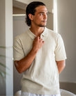 A knitted polo designed for understated sophistication. The vertical ribbing adds depth, while the relaxed fit ensures all-day ease. Perfect for layering or wearing solo, this versatile staple balances comfort with timeless appeal.