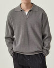 The Textured Knit Polo Sweater combines classic style with everyday ease. Made from durable polyester fibre, it offers a soft, breathable feel with excellent shape retention and easy care. Featuring an open polo collar, ribbed cuffs and hem, and a subtle textured knit, it strikes the perfect balance between relaxed comfort and understated sophistication.