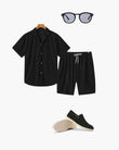 The Avalon Black blends modern refinement with relaxed comfort. Featuring a soft corduroy set, minimalist leather clogs, and sleek tinted glasses, this ensemble offers the perfect combination of casual luxury and timeless elegance. Whether you’re unwinding at home or stepping out for a leisurely day, The Avalon Collection ensures you do so with effortless grace.