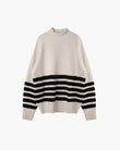 The Coastal Stripe Sweater brings a fresh, nautical-inspired charm to your wardrobe. Designed in a soft cream with bold black stripes along the lower body and sleeves, this oversized sweater offers both warmth and effortless style. Crafted for comfort, it features a relaxed fit and a high neckline, perfect for layering on breezy days. Ideal for casual outings or cozy weekends, the Coastal Stripe Sweater is a versatile piece that adds a touch of classic elegance to any outfit