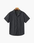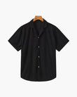 - Relaxed-fit button-up shirt with an open collar for casual elegance