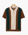 Tivoli Half-Zip brings a refined vintage energy to everyday style. With wide ribbed panels, clean vertical color blocking, and a sharp half-zip collar, this short-sleeve knit is designed for the man who appreciates timeless silhouettes with a modern edge.